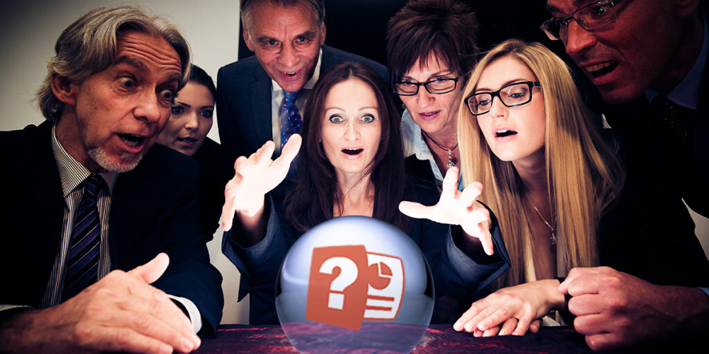 En effet, si vous affichez 5 bullets points que vous avez prévu d’énumérer à haute voix, arrêtez tout de suite ! Ce sera beaucoup plus captivant si on vous voit à l’image. Pourquoi ? Parce qu’il y a de fortes chances que vos « visionneurs » aient lu la totalité de vos 5 bullets points avant que vous n’ayez terminé de lister le premier. Vous en avez certainement déjà fait l’expérience, les exemples sont nombreux, même au journal télé. (nobody’s perfect).